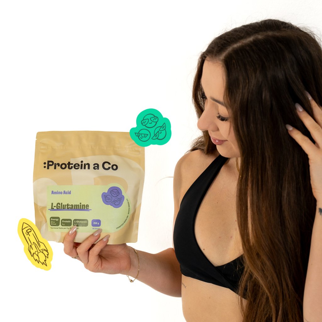 Glutamín je neesenciálna aminokyselina vo forme prášku . Vytvára až 60% z aminokyselinového podielu vo svalových bunkách . Patrí medzi aminokyseliny, ktoré sa podieľajú na tvorbe bielkovín vo svaloch . Pri vysokej fyzickej záťaži dochádza k zníženiu hladiny glutamínu v tele a je vhodné ho suplementovať, najmä pre športovcov.