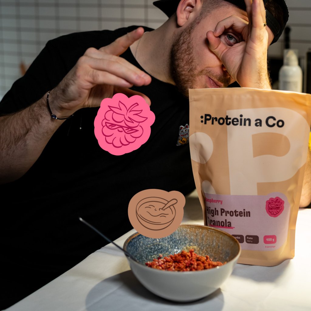 Predstavujeme ti proteínovú granolu s malinami. Spojili sme chrumkavú granolu s plnou chuťou malín a lahodnosťou mliečnej čokolády. Vysoký obsah proteínu je už len čerešničkou na torte, pretože naň vo svojej strave nesmieš zabúdať. Prečo?