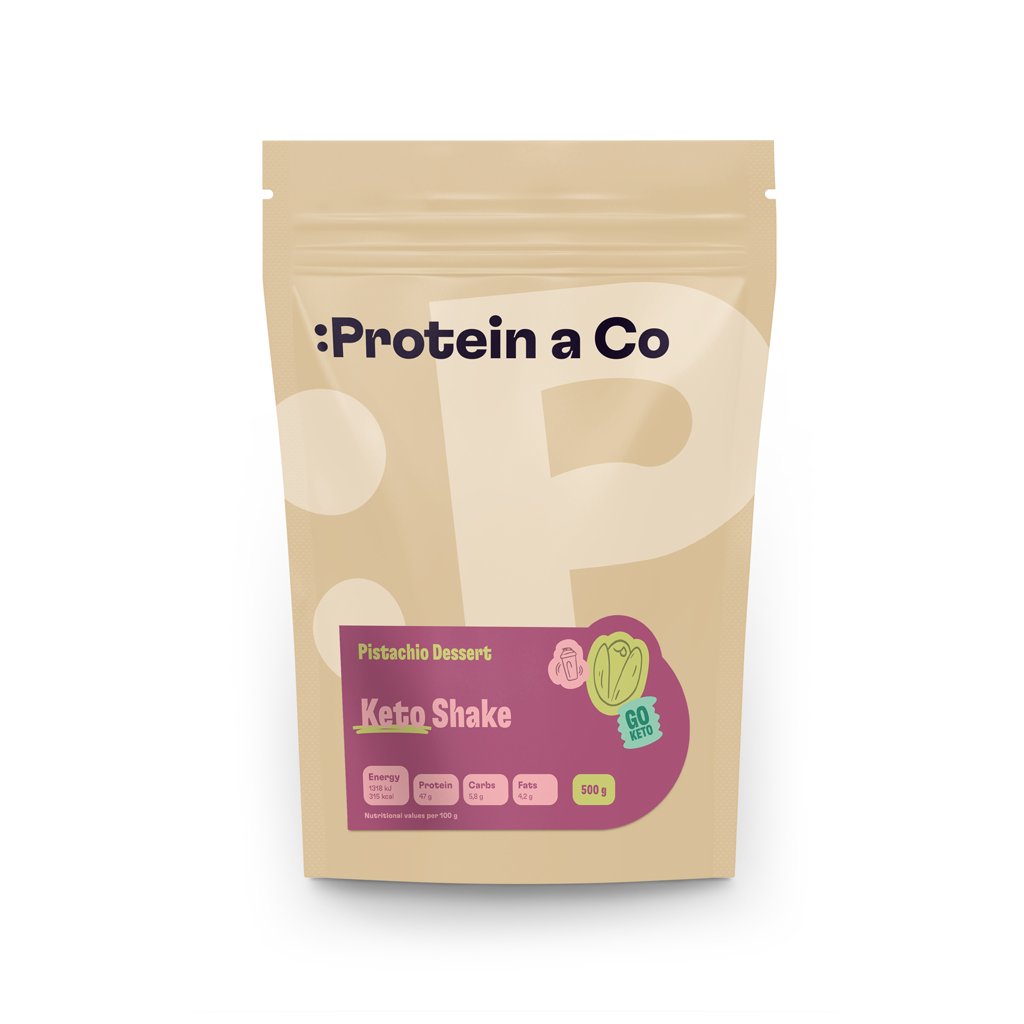 Pistachio dessert: Srvátkový proteínový koncentrát CFM (min. 40%) micelárny kazeín (min. 10%), vaječný bielok (min. 10%), pistáciová aróma, tráviace enzýmy, vitamínová zmes (citran draselný, fosforečnan vápencový fumarát železnatý, citran zinočnatý, D-alfa-tokoferyl acetát, glukonát manganatý, retinol acetát, cholekalciferol, fylochinón, tiamín, riboflavín, niacín, pantothenát vápenatý, pyridoxín HCl,- jodičnan draselný, seleničitan sodný, glukonát meďnatý, chlorid chromitý, nosič: maltodextrín), čakanková vláknina, konzervant: soľ kamenná, glycín, sladidlo sukralóza