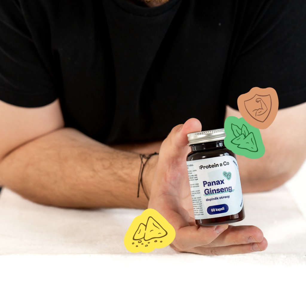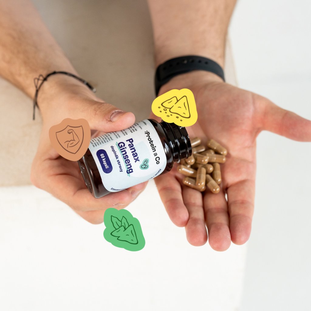 Extrakt z koreňa ženšenu pravého ( Panax ginseng ), vegánska HPMC kapsule.